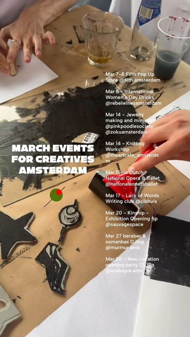 Events happen at various locations around Amsterdam - cafés, studios, parks, galleries, and creative spaces. Each event page lists its specific address and meeting point. Most are accessible by bike or public transport.